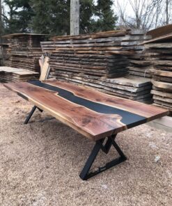 12ft x 4ft Black Walnut + Black Epoxy River + Steel Legs $9450 custom made to order.
