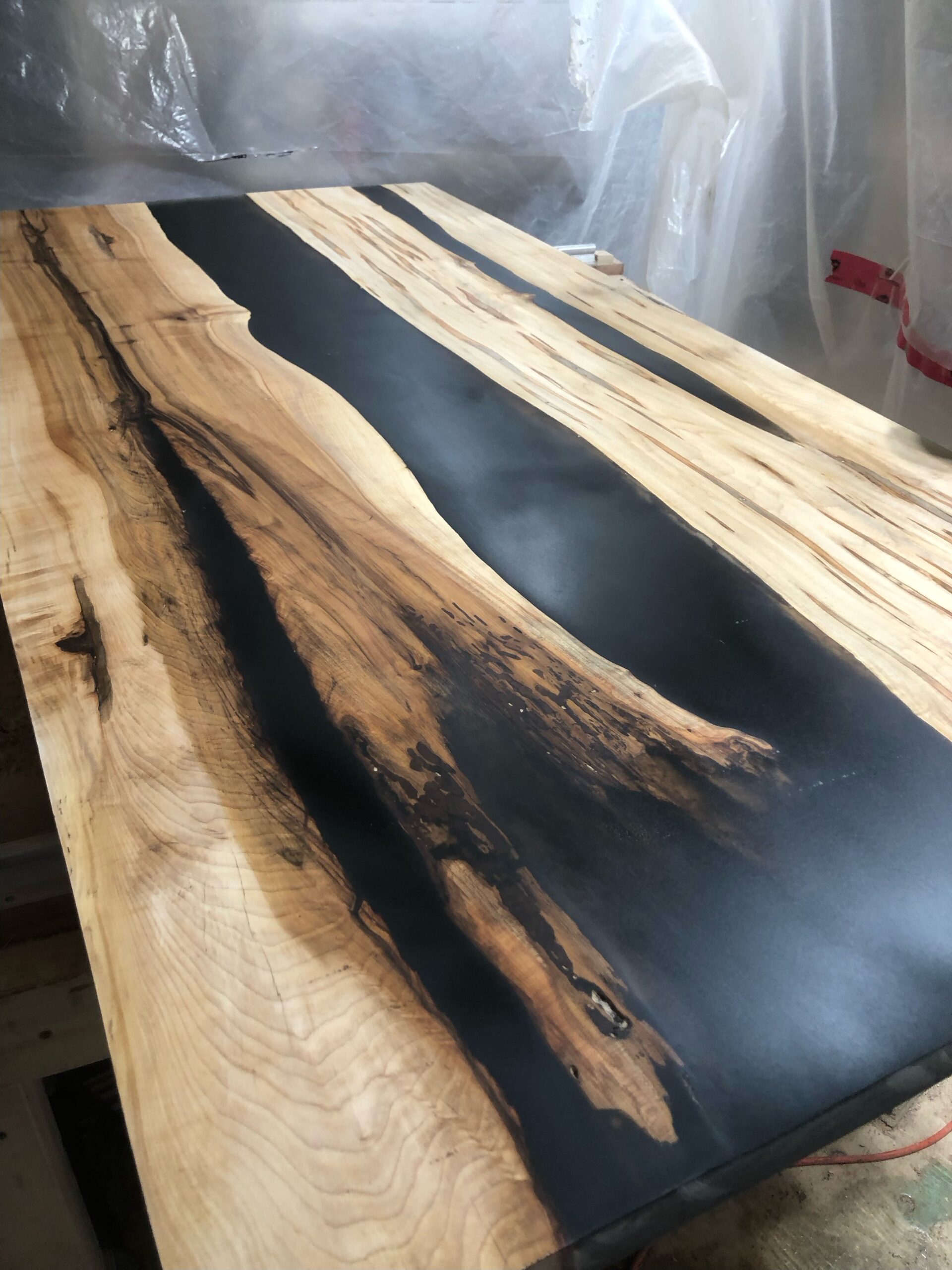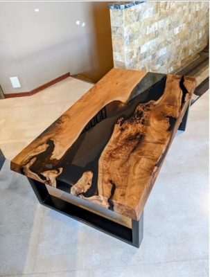 Final Quote: 50″ x 30″ Maple + Epoxy Semi-Trans Highlights + Steel Legs – $1950-$2250 + Tax + Shipping to M8Z $250- $2790
