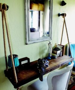 ★Completed with “knotted rope suspension” fixed on the wall with heavy iron pipe brackets. The ends of the knotted ropes are beautiful, solid copper clamp is closed.